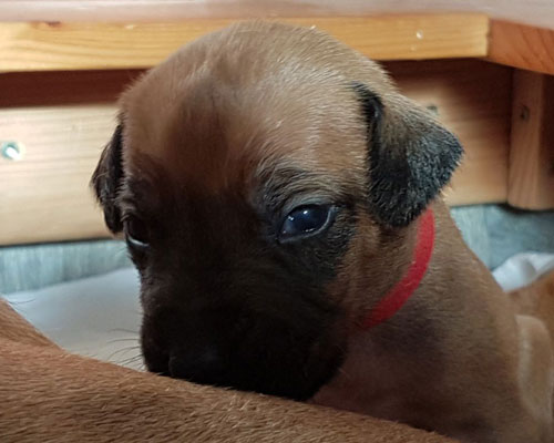| 02.10.2022 Finesse besteht ihre Zuchtzulassung! Anfang Oktober hat unsere Hündin "Kidogo Ajabu Finesse en Rouge" die Zuchtzulassungsprüfung der DZRR in Köthen (Sachsen-Analt) mit Leichtigkeit in allen Teilen bestanden. Sie ist nun uneingeschränkt zur Zucht zugelassen. Wir freuen uns sehr über diesen großartigen Erfolg!