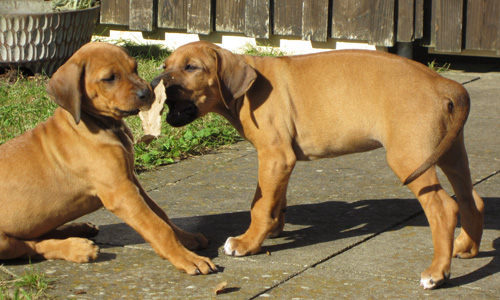 | Gemeinsames friedliches Fressen will gelernt sein. | Du hast da was... (Rüde Nr. 7) | ||
