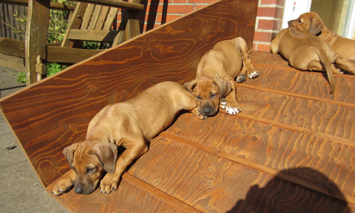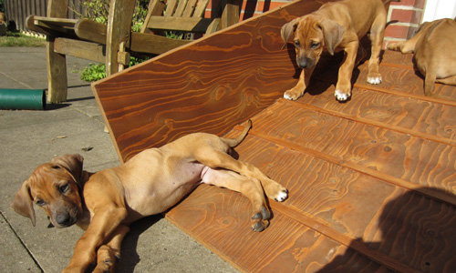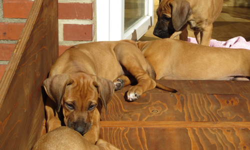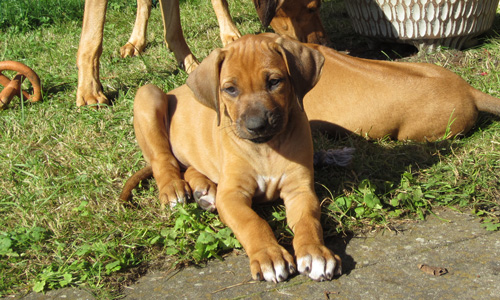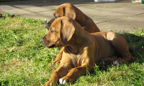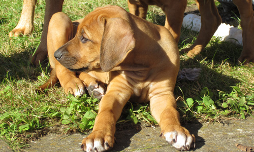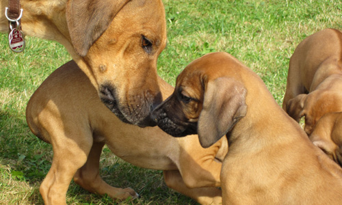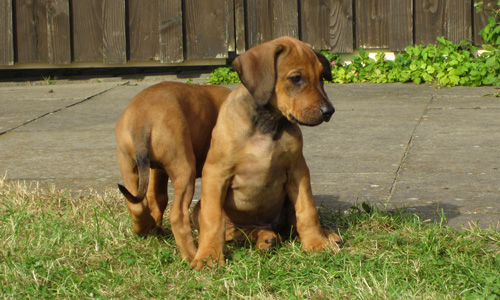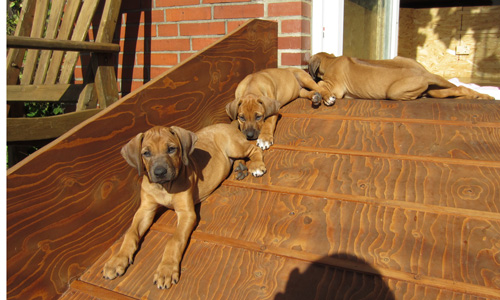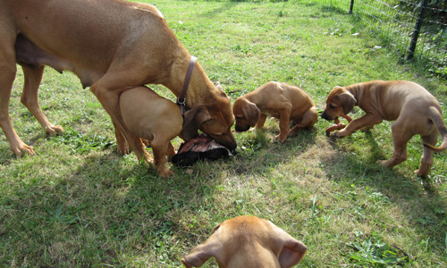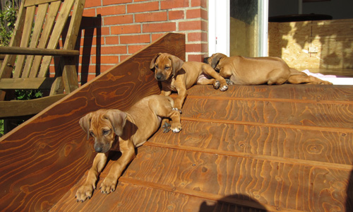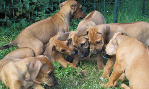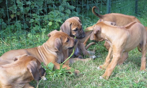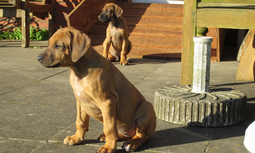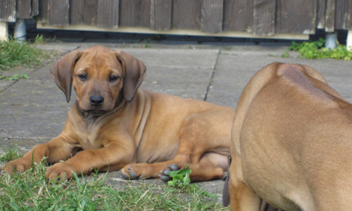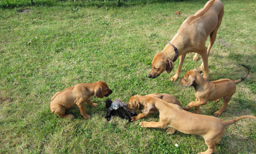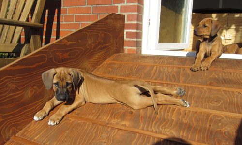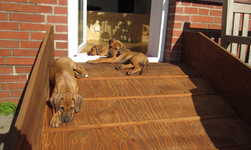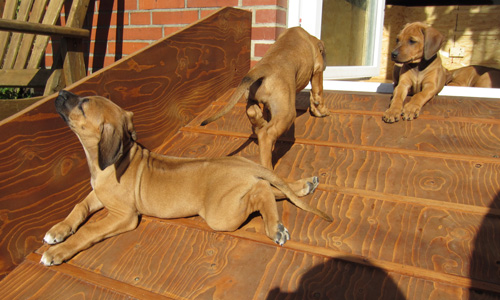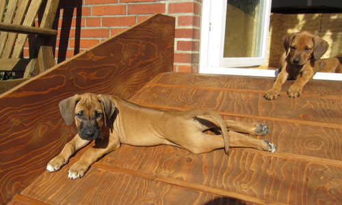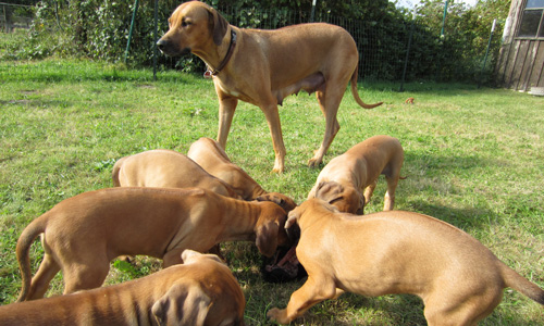 | Hündin Nr. 1, dahinter Rüde Nr. 7 | Hier auch! | ||
